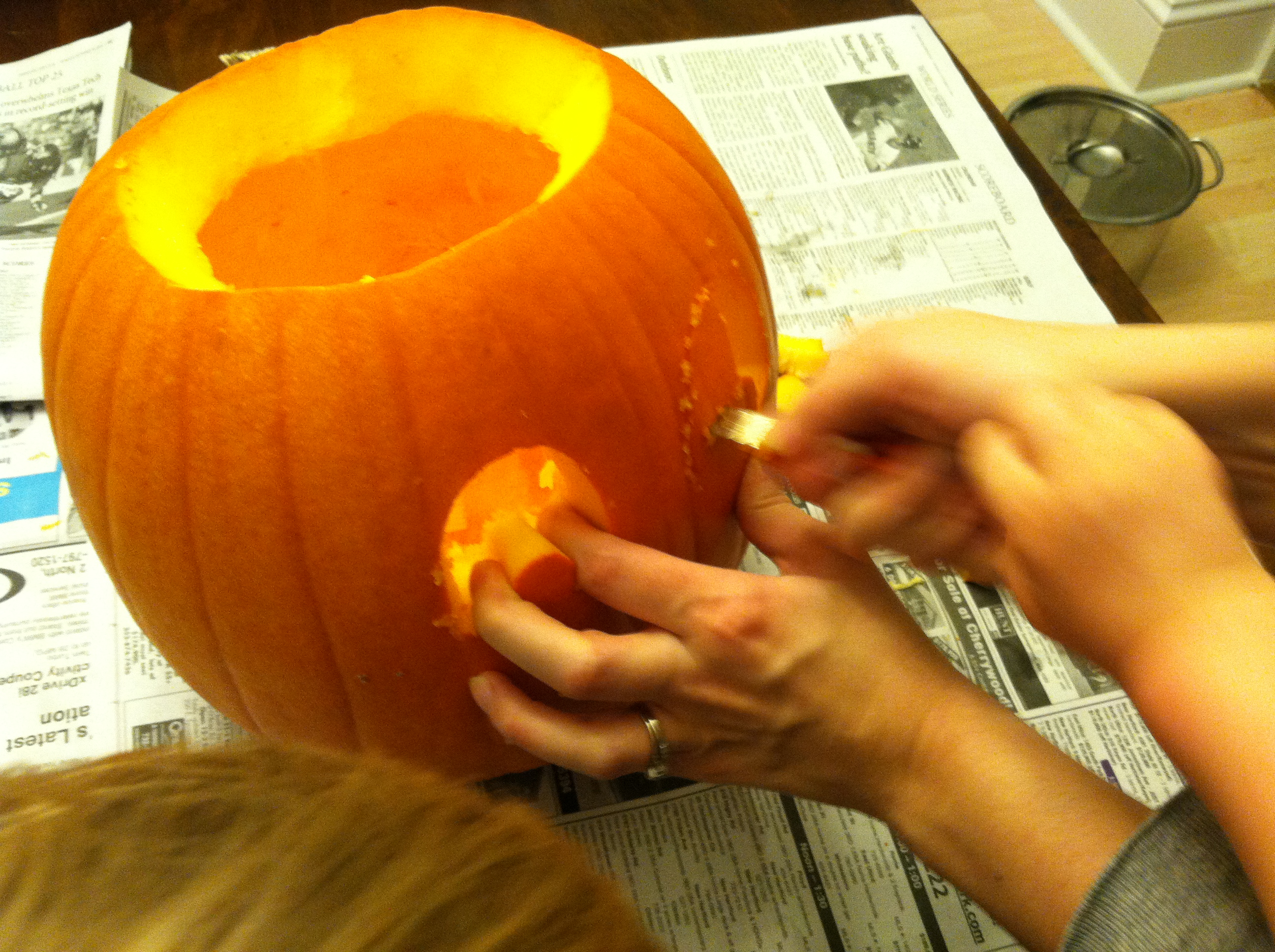 With Halloween fast-approaching, we carved a pumpkin this weekend. While it may not be rocket science, I want to offer one bit of advice that I found made our whole process incredibly easier – if your child is taking an afternoon nap, use that nap-time to get all the gutting of your pumpkin out of the way.