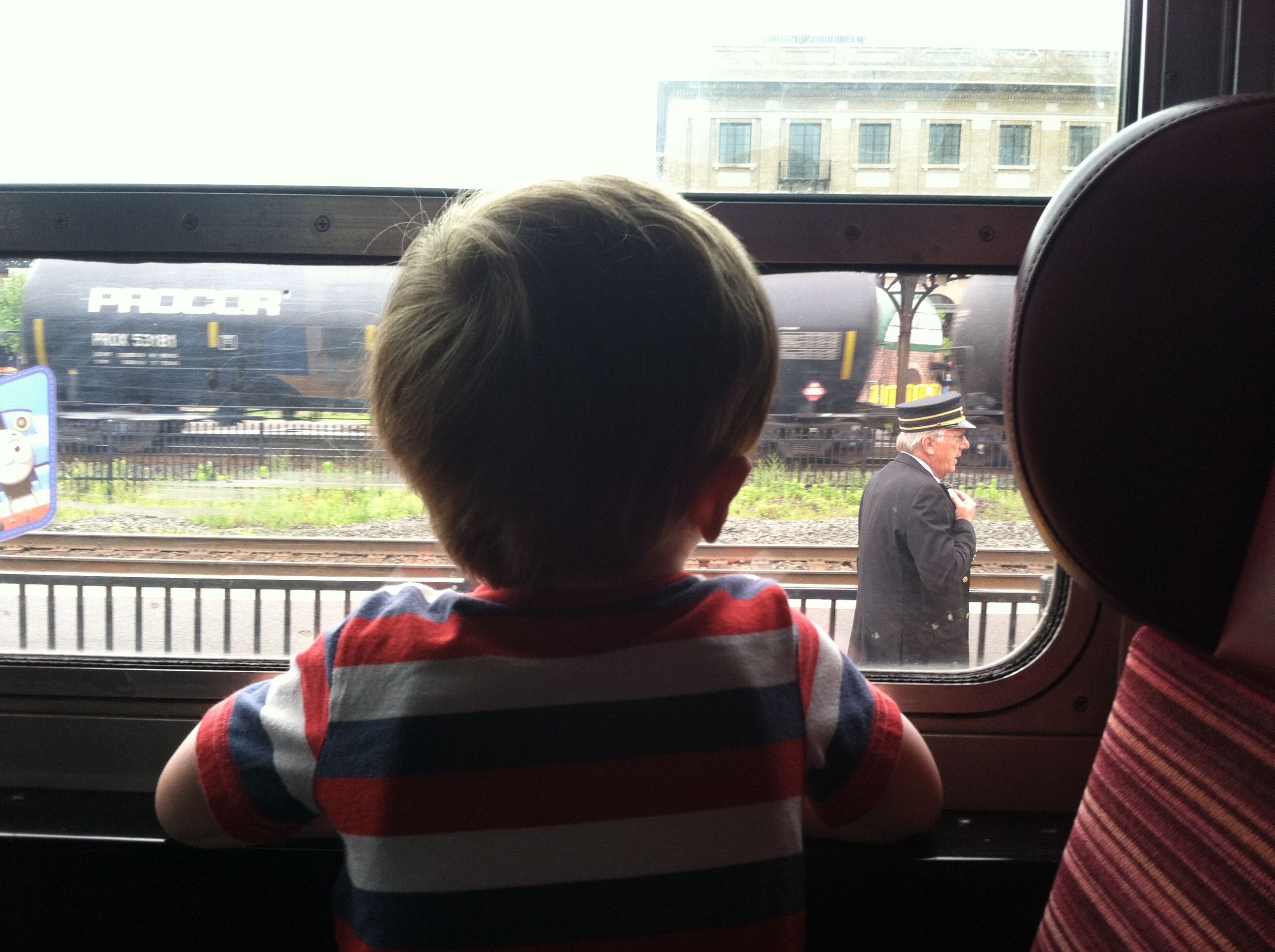 He sang, surprising us with how many of the songs he knew and sang right along with, and pointed out all the characters that decorated the train windows as decals. He even got a certificate declaring him a Junior Conductor.