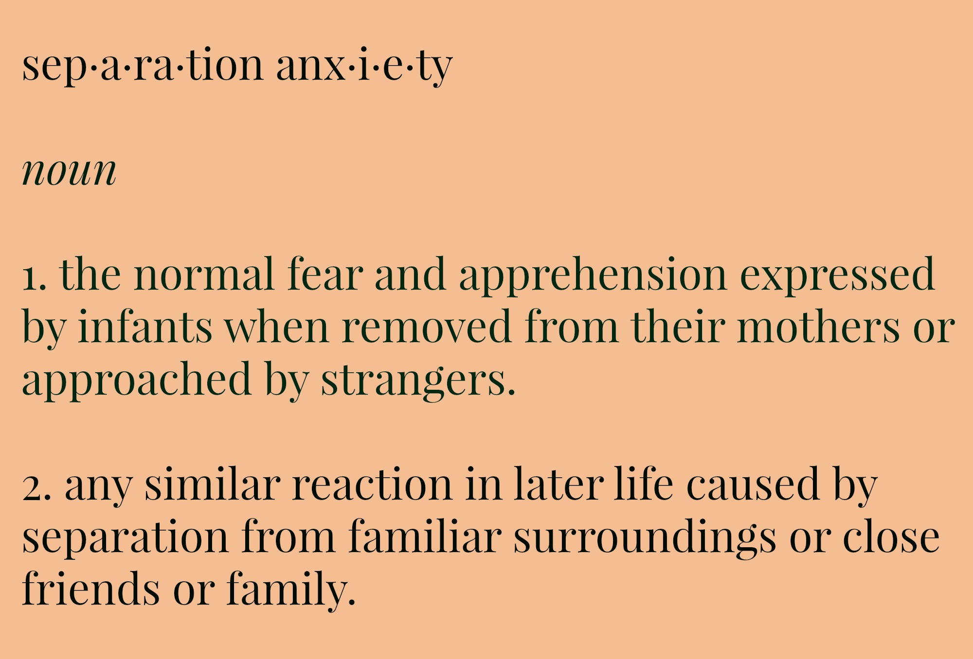 This or something akin to this is likely what you’ll find when you search for the definition of separation anxiety.