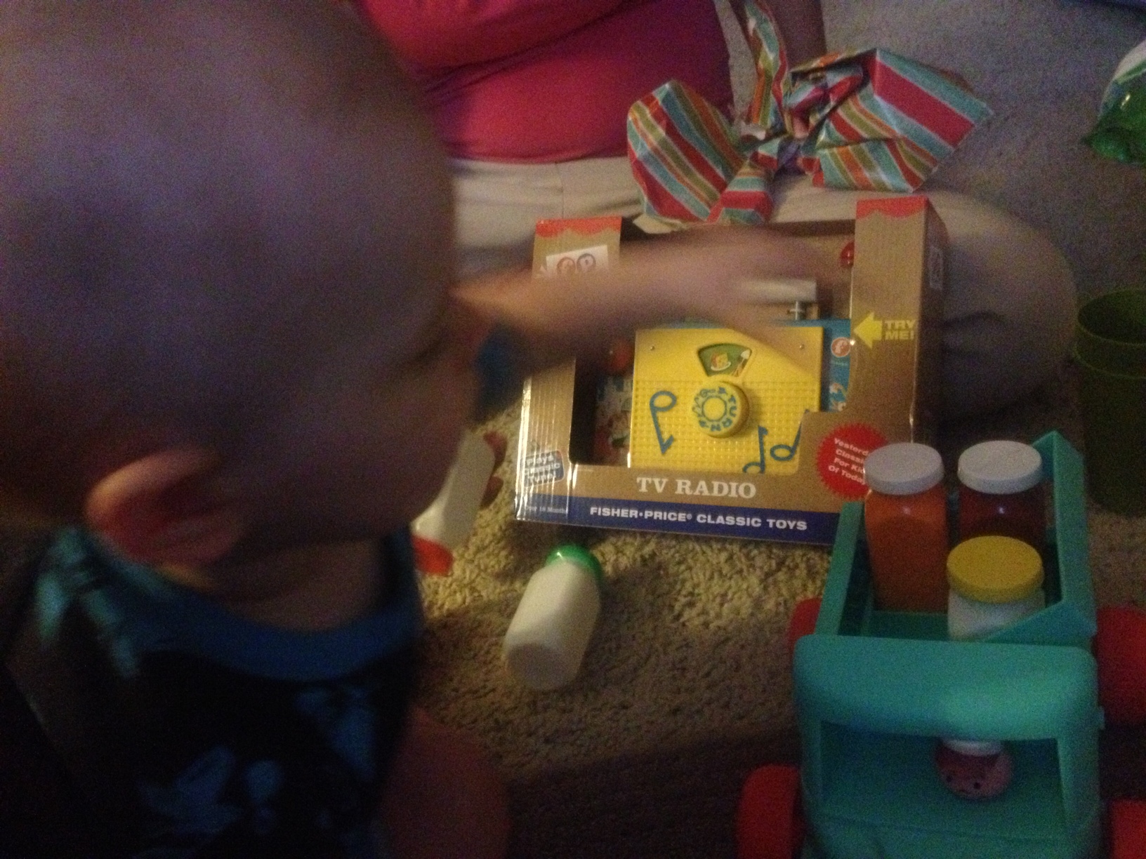 Whether it was some new Mo Willems books for our collection, or some of the Fisher Price Retro-toys (a milk truck?! a portable radio?! how neat is this line of toys?!), Little People on a Farm or a Little People version of the Justice League, he made out like a bandit. Although, that little red tricycle from an old friend will have to wait a few years until he’s old enough to ride. 😉