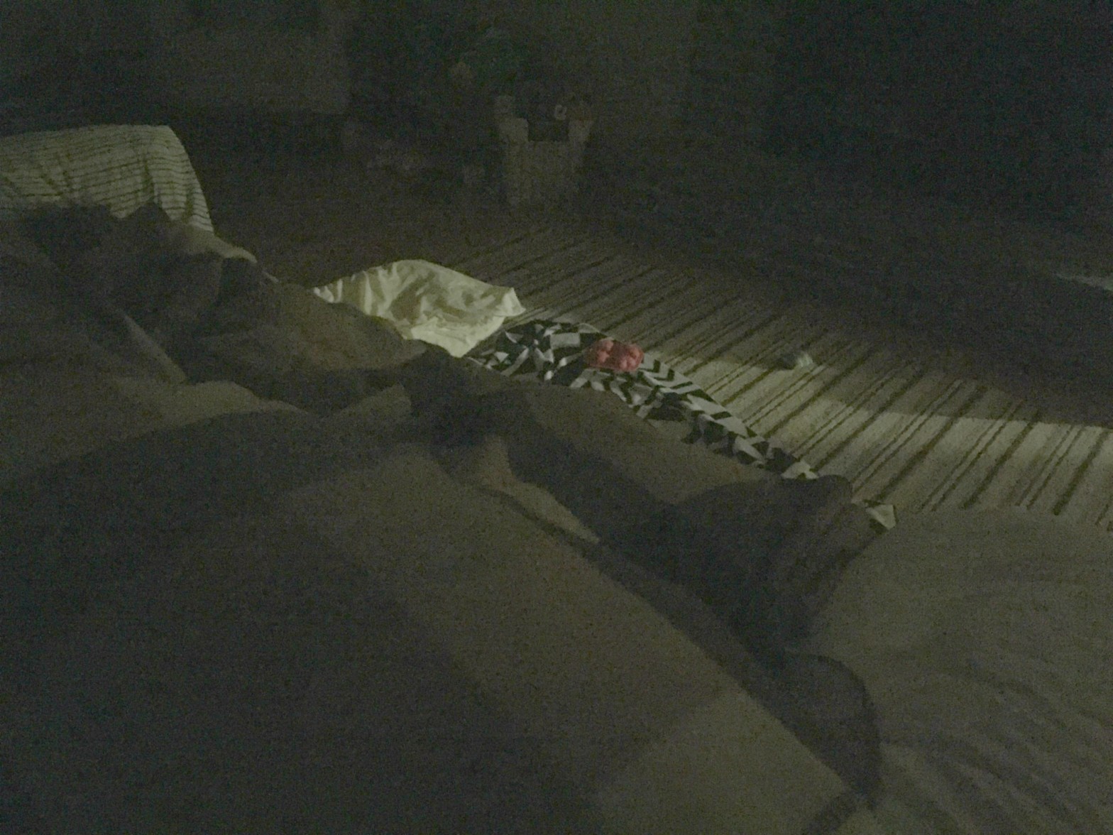 It was around, probably 2 or 3 in the morning. The sound of rain was hitting the windows and streets outside, adding nature’s own little lullaby of sound to the night. I awoke to the sound of our son’s voice calling out from the other room, scared. I went in and found him in bed,Continue reading “Nightmare equals impromptu sleepover (and a stiff neck)”